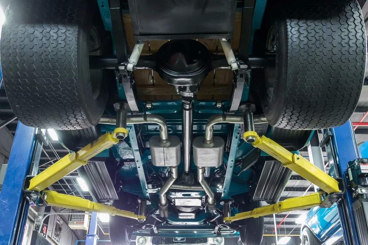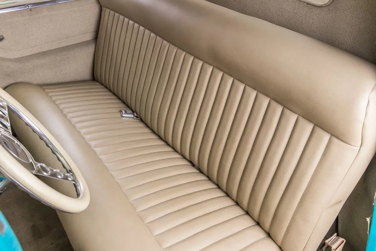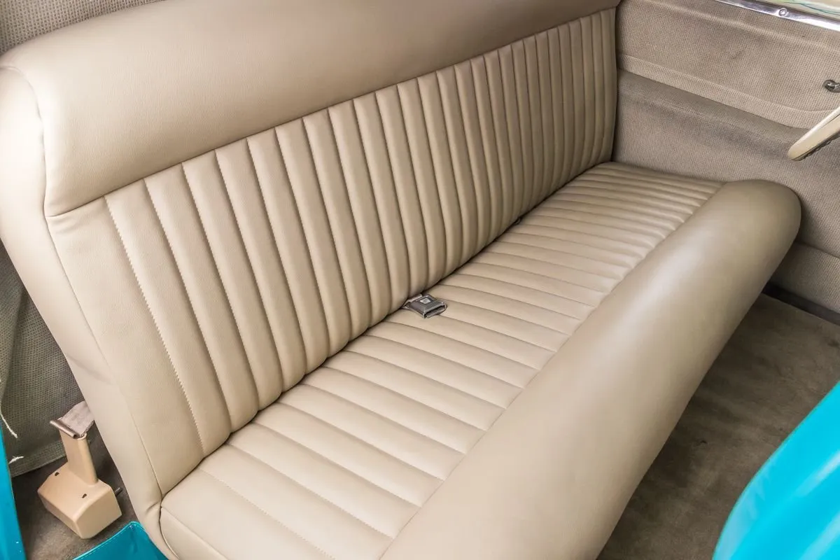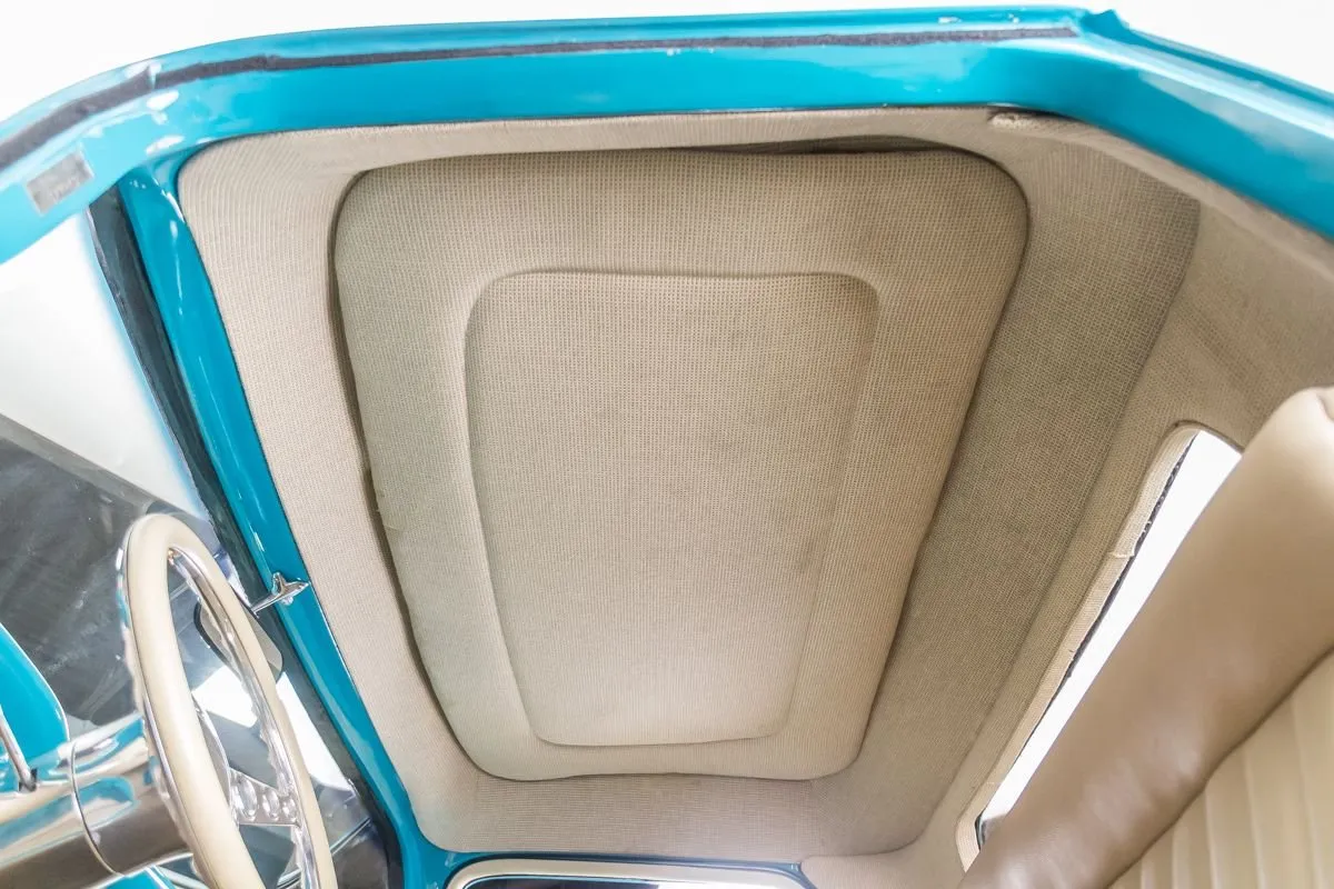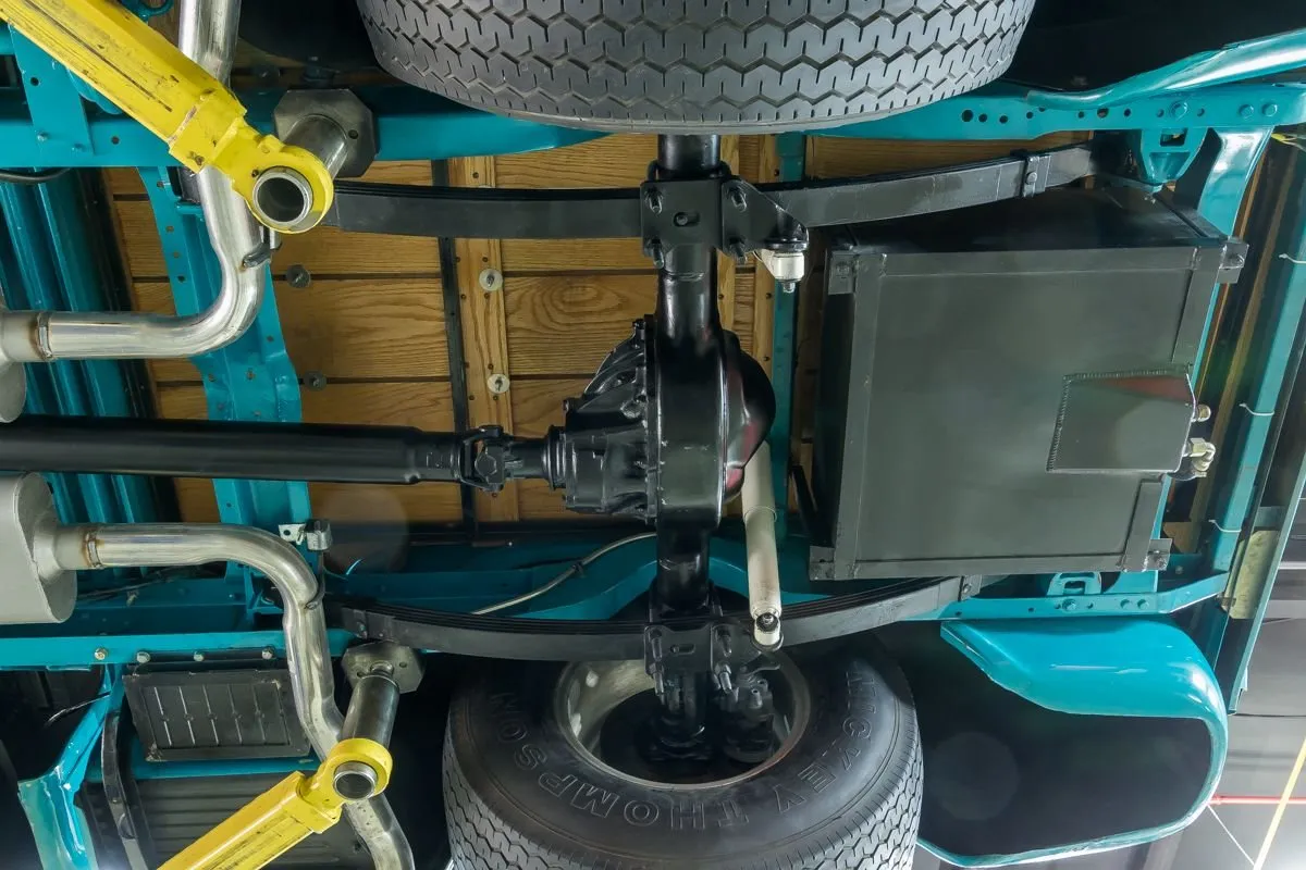 1955 Chevrolet 3100 Pickup in Custom Two-Tone over Tan Upholstered Interior. This fully restored, all-steel custom 3100 underwent a high-end frame-off build with a focus on power, detail, and presentation. It’s powered by a true GM 427ci V8 featuring LS5 heads, 750 Holley carburetor, and a TH350 automatic transmission. A 9” Ford rear end with 3.25:1 gears delivers strong street performance, complemented by power 4-wheel disc brakes and power steering.