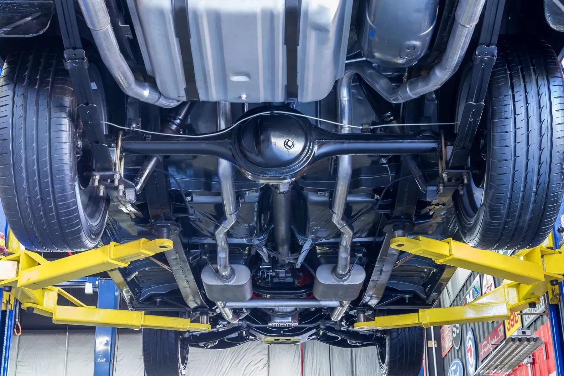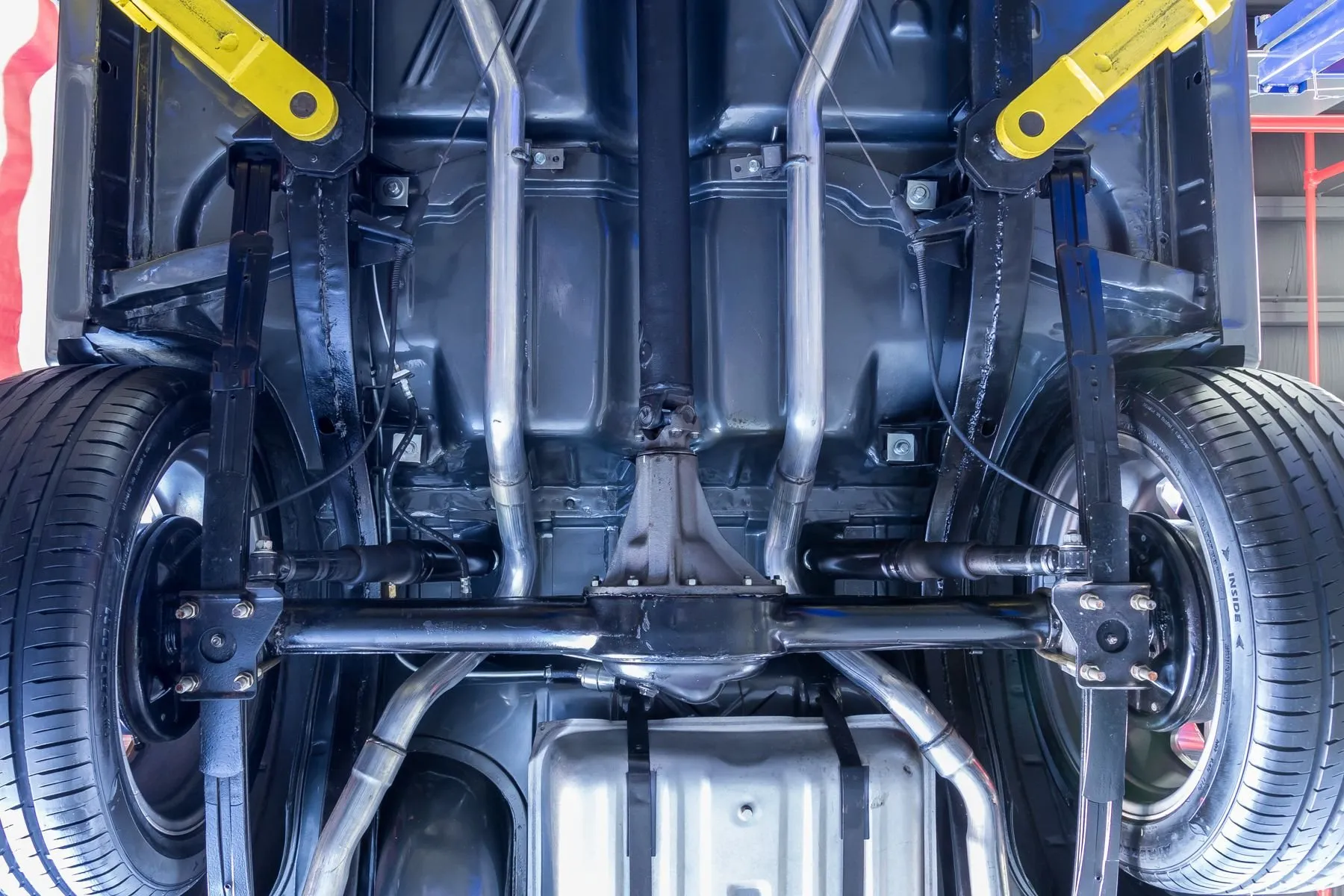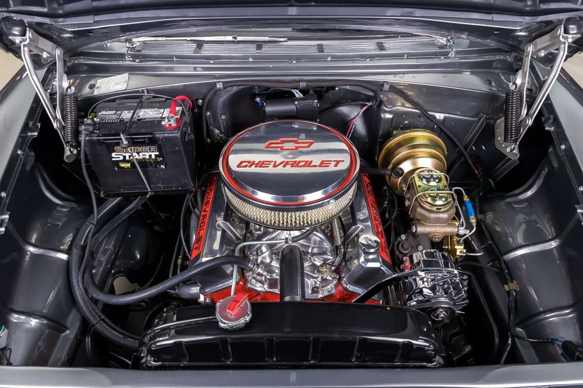 Equipped with power front disc brakes and rear drums, the car also features dual FlowMaster exhaust, HEI ignition, polished headers, and new lines, hoses, and body mounts. The undercarriage is clean and finished with painted floors, new stainless trim, and weather stripping.