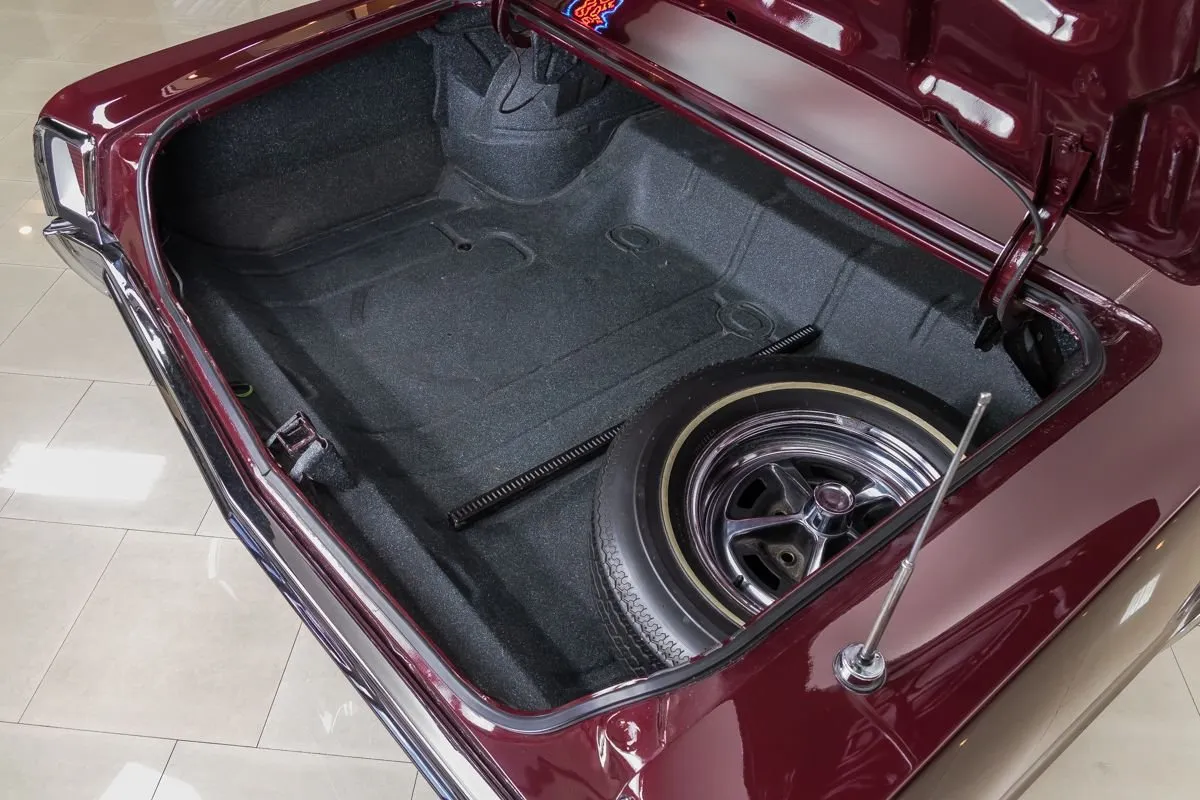 The dual exhaust system with MagnaFlow mufflers delivers a deep, classic tone. Front and rear sway bars, new shocks, and fresh suspension components provide a confident ride. The convertible top is power-operated and includes a matching boot for a clean look when down.