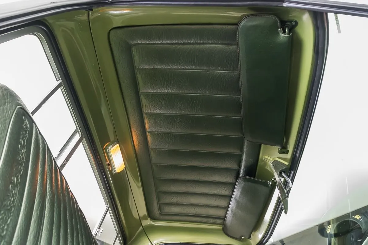Inside, the cabin features restored upholstery, clean carpeting, seat belts, detailed dash with clear gauges, and factory AM radio. A highly presentable steering wheel, chrome accents, and working fans and horn complete the interior.