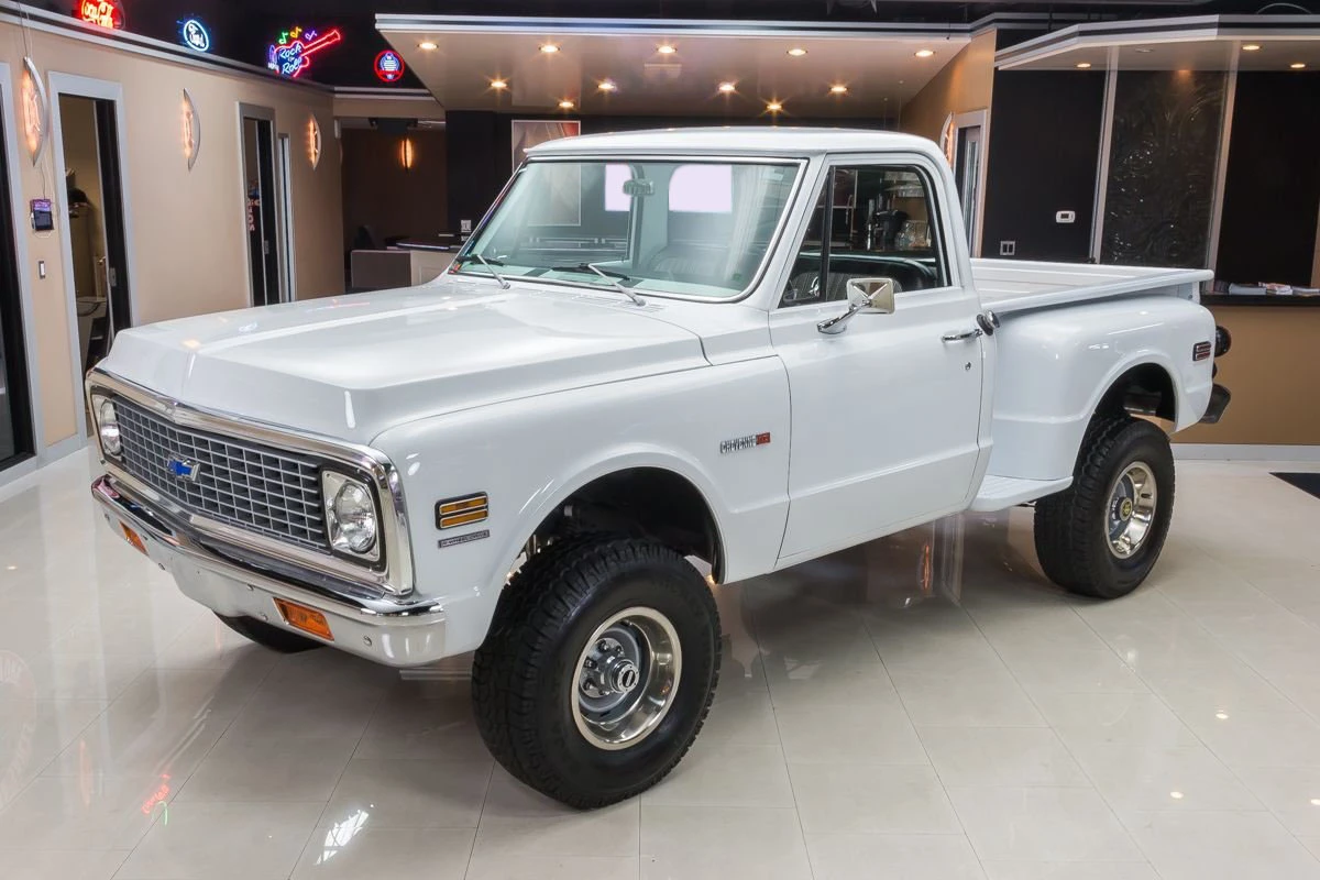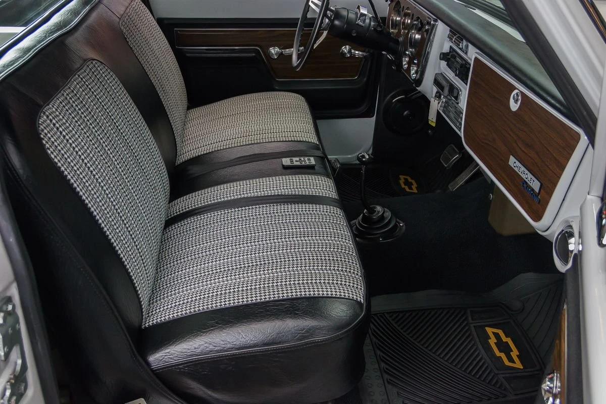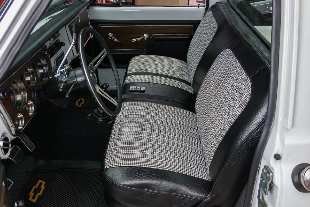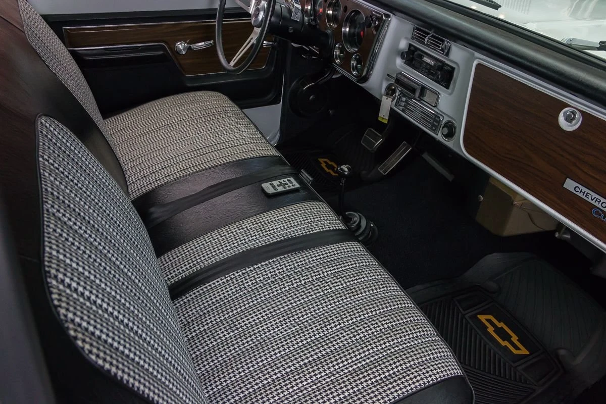 1972 Chevrolet C10 4×4 Pickup in White over Houndstooth Interior.