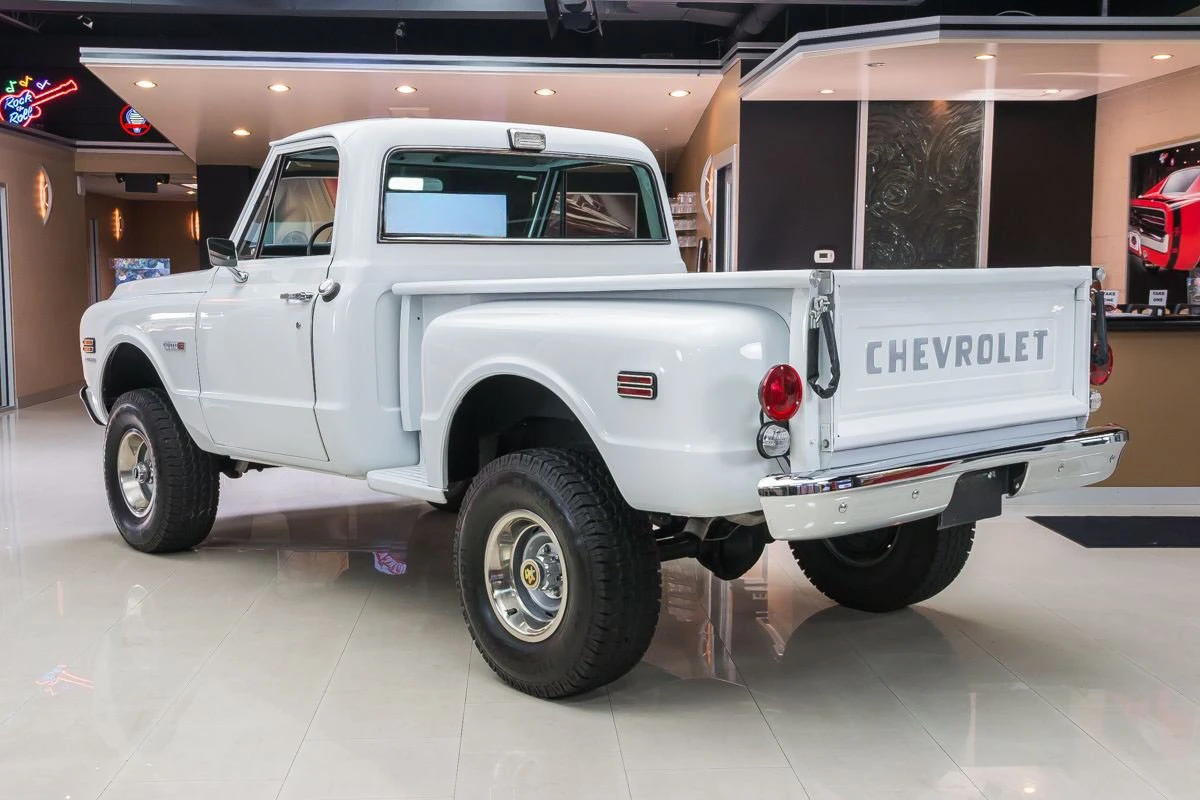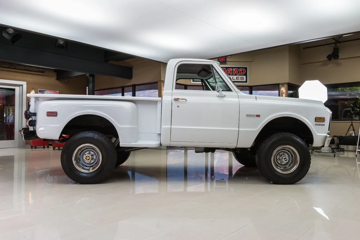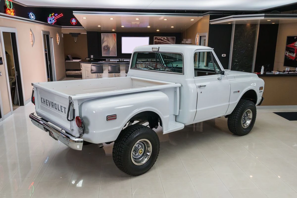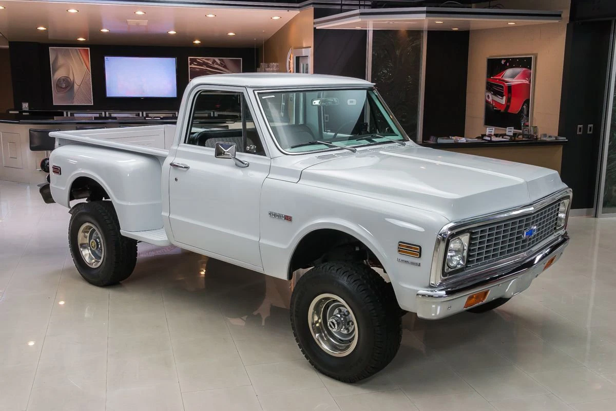 1972 Chevrolet C10 4×4 Pickup in White over Houndstooth Interior.