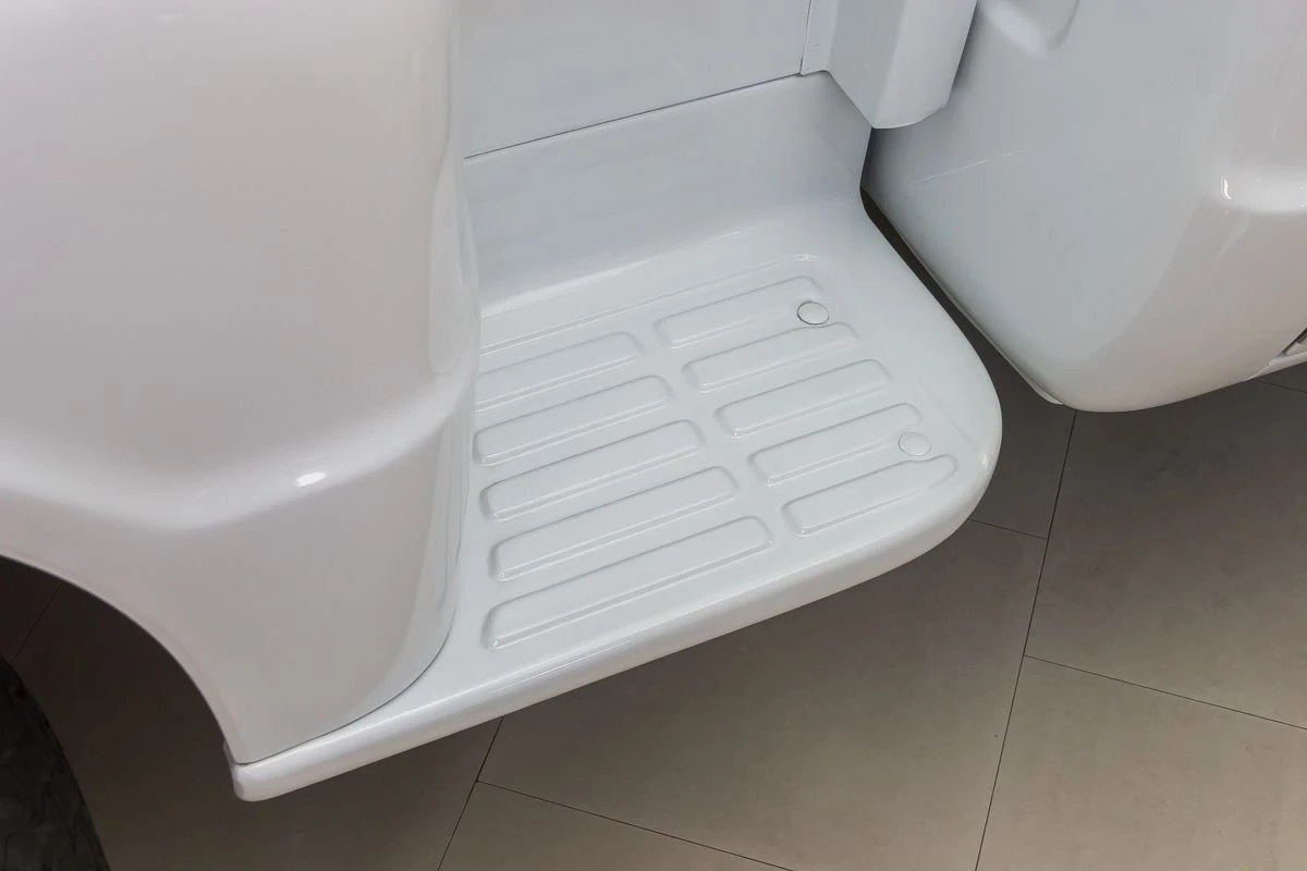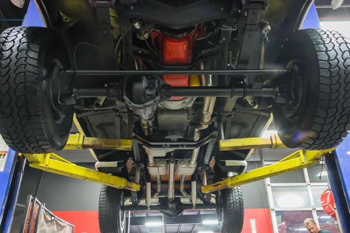 The chassis is highly detailed with fresh bushings, shocks, and leaf spring suspension front and rear. A Dana 44 front axle and front power disc brakes ensure confident handling. It rides on 15” wheels with Mickey Thompson Baja ATZ Radials and front locking hubs.