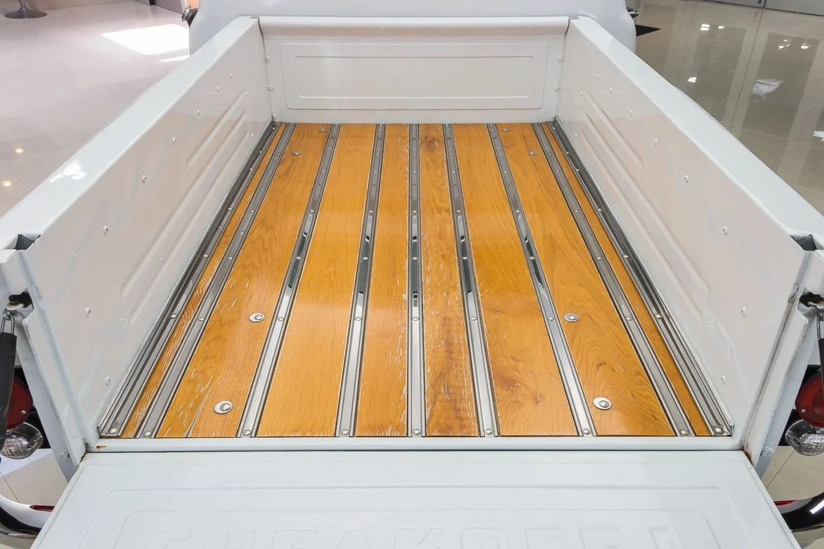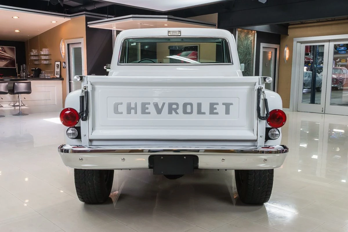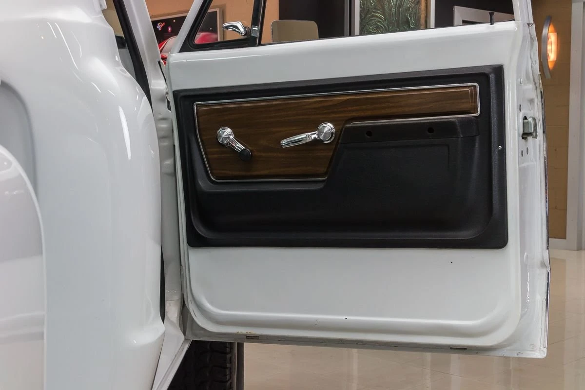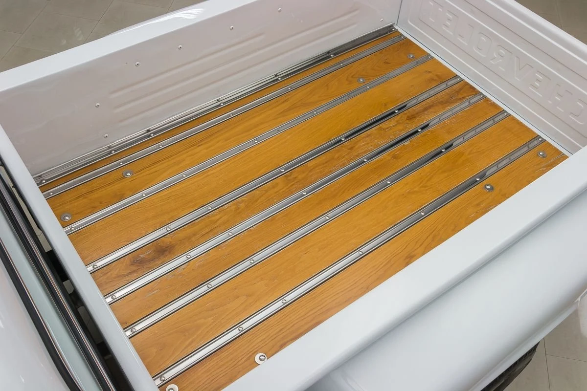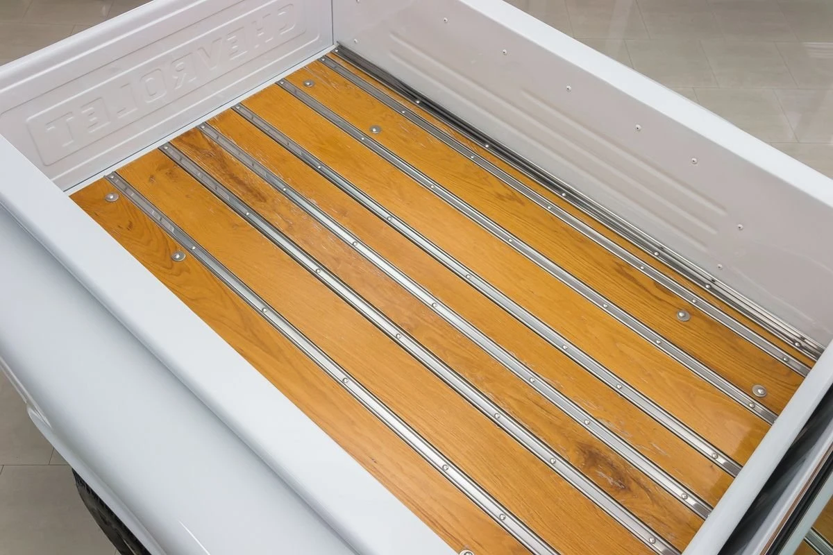 The oak wood bed with stainless hardware, clean lines, and solid undercarriage complete this beautifully restored 4×4, blending rugged capability with classic Chevrolet styling.
